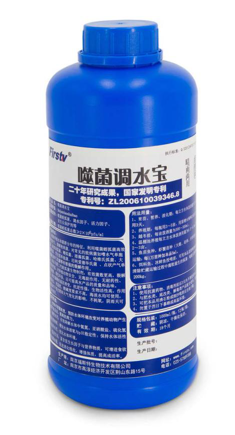 噬菌调水宝,主要成分噬菌蛭弧菌、调水因子、活力因子、促生长保护剂等。产生的代谢产物可分解、转化水中的亚硝酸盐,改善养殖水体水质,减少蛋白态氮向氨和胺转化,从而减轻水中氨和有机质污染。对病原菌独持的寄生和裂解特性,可有效清除养殖水体及水生动物体内的病原菌减少病原菌数量,使其无法达到致病密度,以达到防治病害、提高养殖动物成活率的效果。不产生耐药性,是替代抗生素的防治水产疾病的新方法。作为水体自净的生物因子,可有效清除养殖池塘中的大肠杆菌、沙门氏菌和不凝集弧菌,清除率均在90%以上。水生动物细菌性疾病的病原菌:气单胞菌属、假单胞菌属、弧菌属这3个革兰氏阴性菌属均能被蛭弧菌裂解,且裂解率高达70%以上。以预防为主,发挥免疫增强剂的功能,刺激溶菌酶活性,增强养殖动物免疫功能相关酶活性。