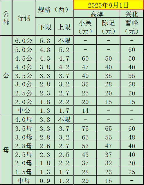 2020年9月1日成蟹价格