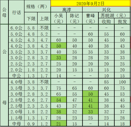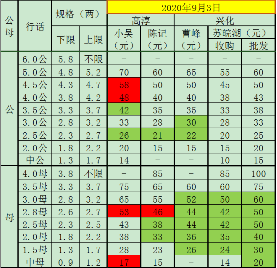 2020年9月3日成蟹价格