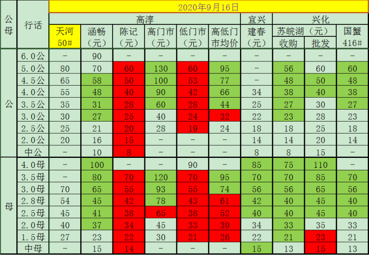 2020年9月16日成蟹价格