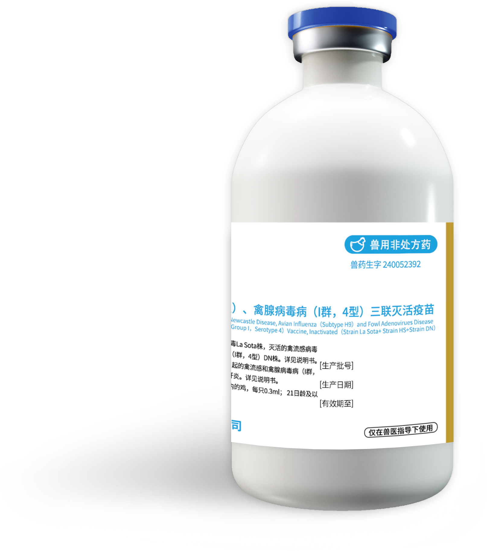 英文名 Newcastle Disease, Avian Influenza(Subtype H9)and Fowl Adenovirues Disease (Group I ,Serotype 4)Vaccine, Inactivated(Strain La Sota+ Strain HS+Strain DN)